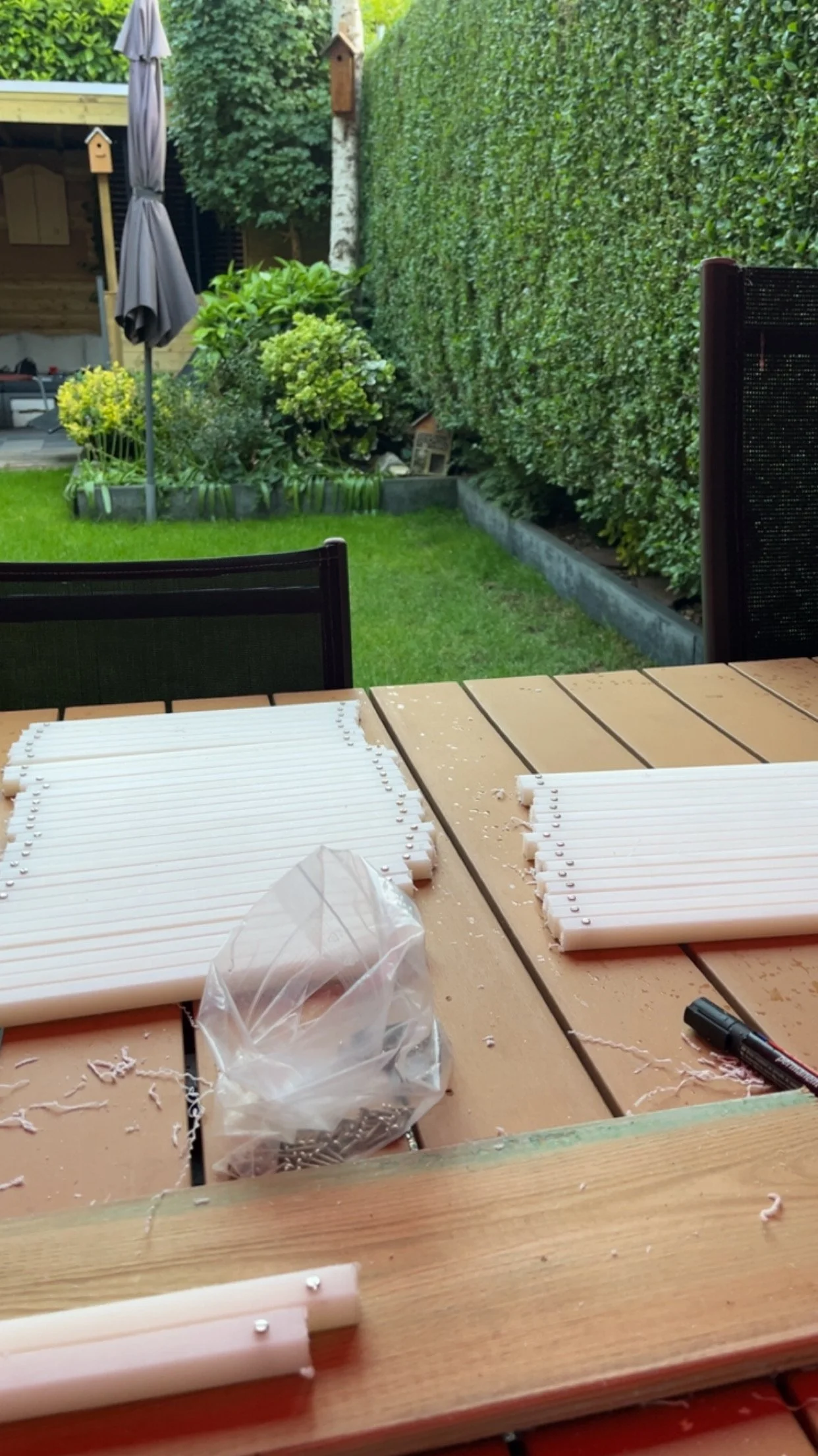 The design is simple, easily made from different materials, modular and sustainable. Using slabs to addapt the piece to every form that needs to be stort, resolting in unique, exploding patterns.