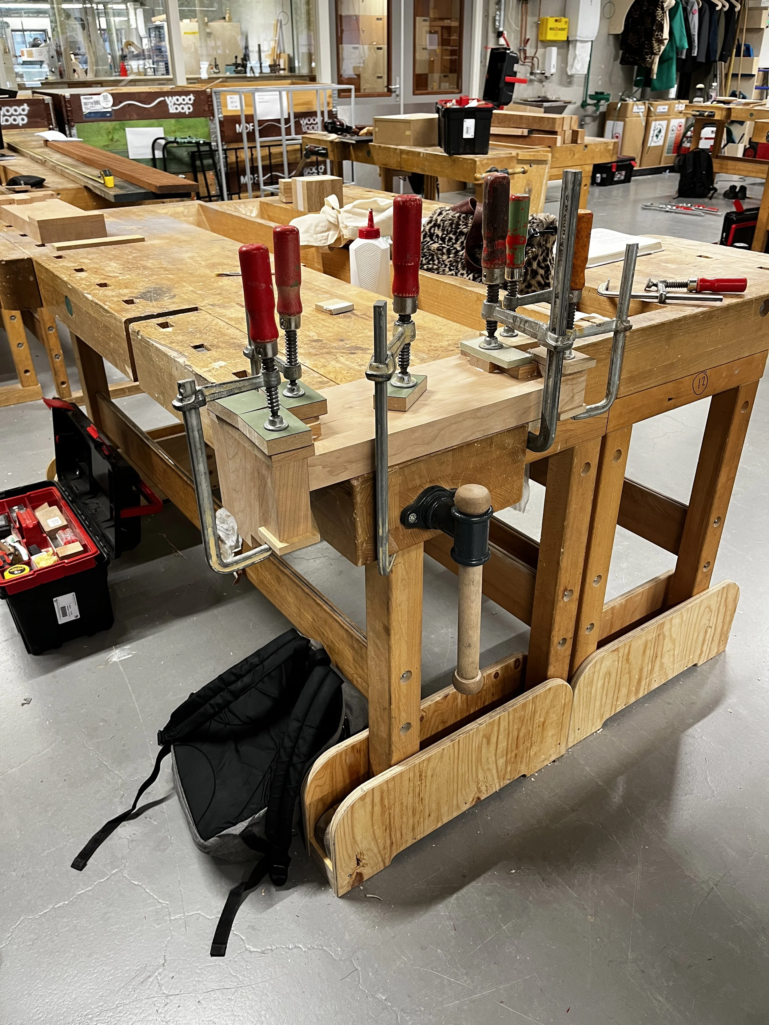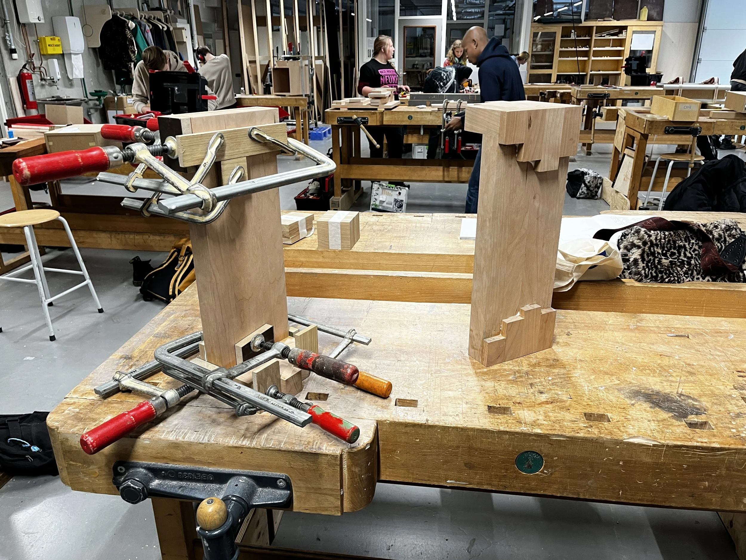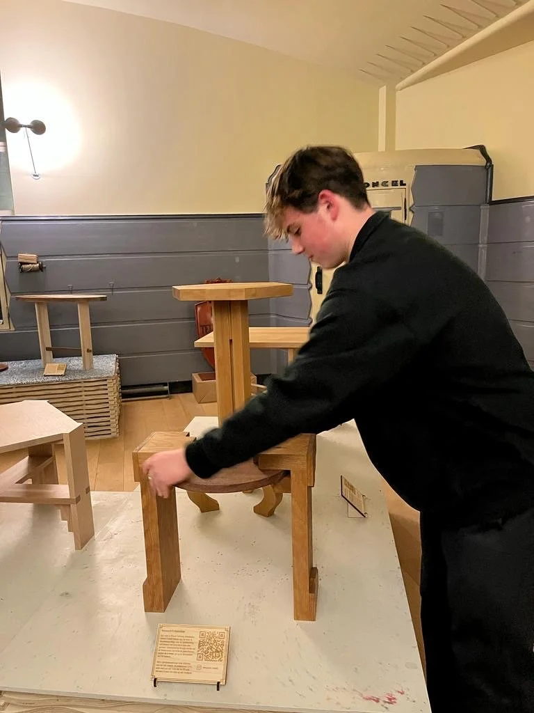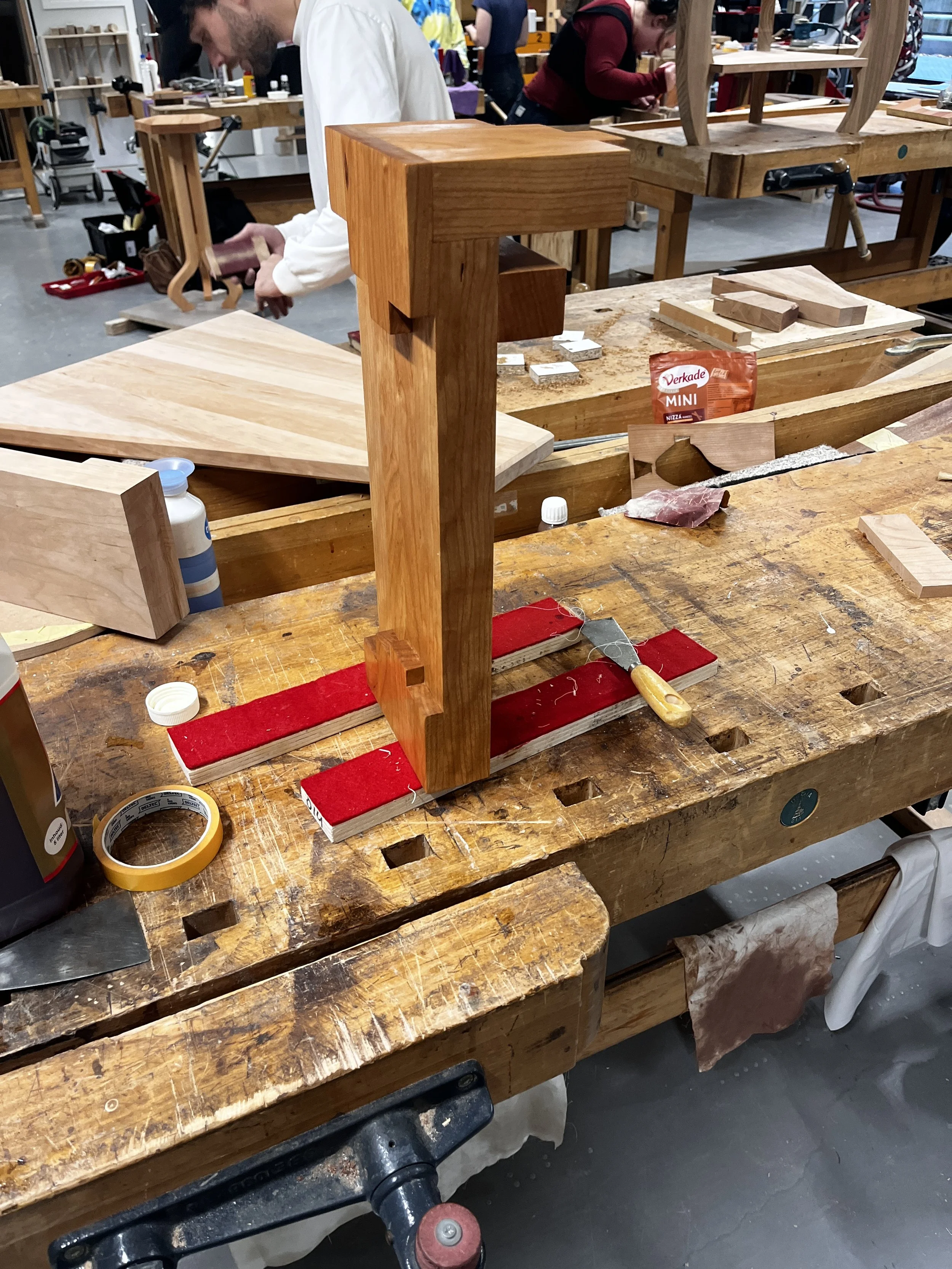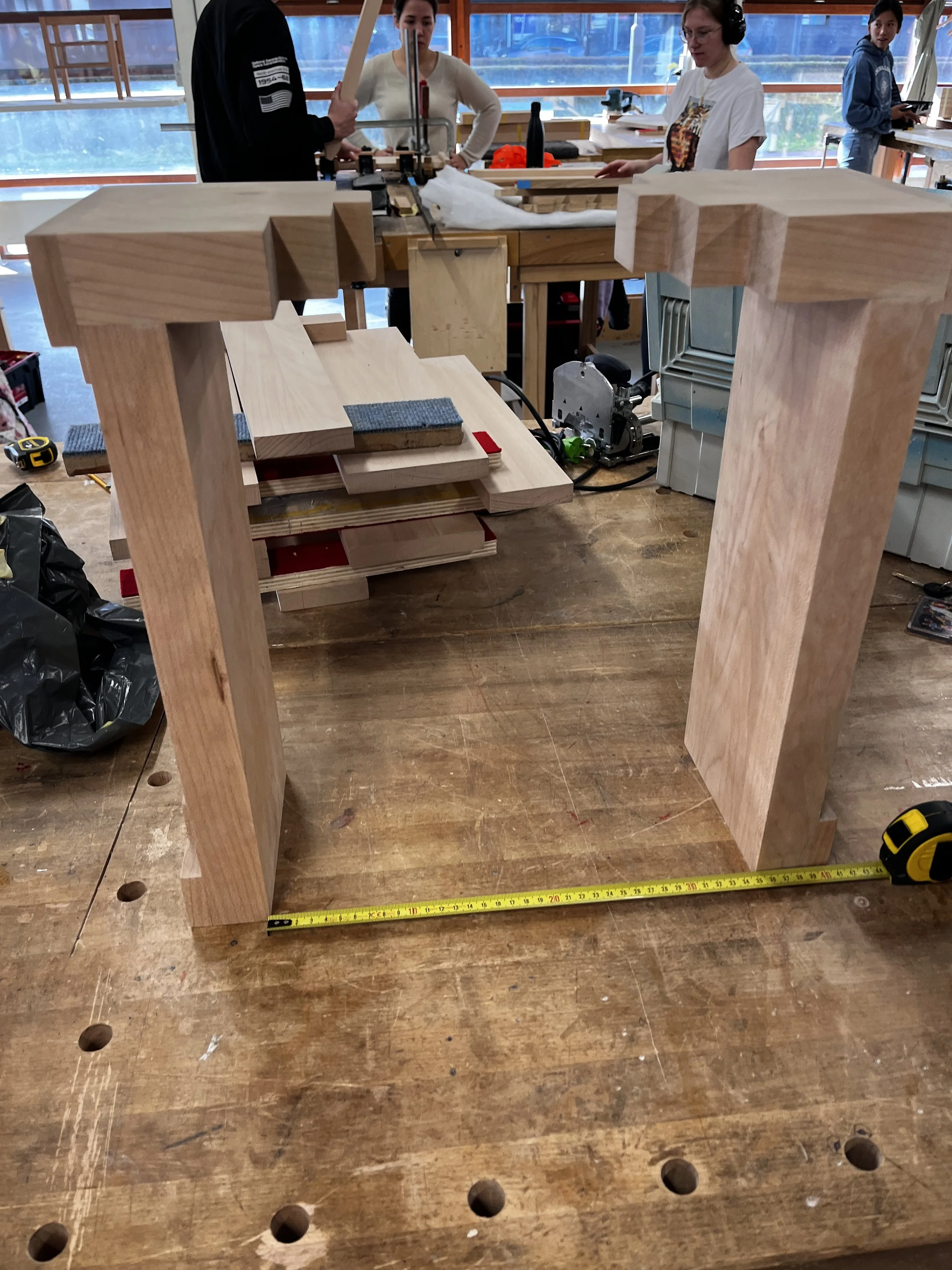 Back at school I transfered the use of bricks, playfull features, round shapes and colors in to a small side table.